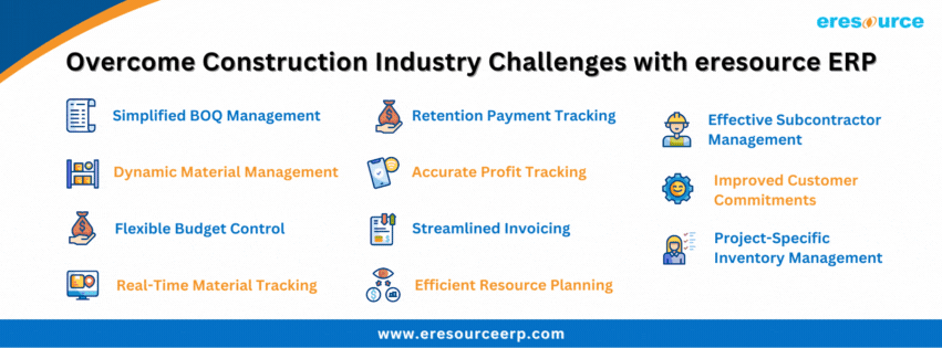 With our deep understanding of the ERP for construction & contracting industry, eresource ERP is the partner you need to overcome challenges, improve efficiency, and ensure the success of every project.