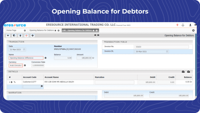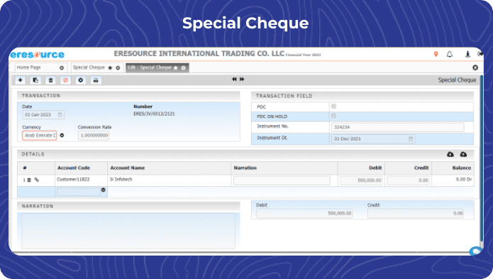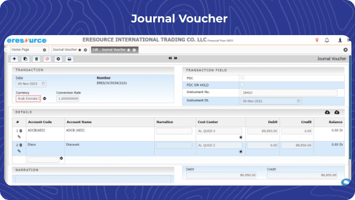 The Accounts and Finance module in eresource ERP is a comprehensive solution that covers both Financial Accounting and Management Accounting aspects. It offers a wide range of features to help businesses manage their financial operations efficiently. Here’s an overview of its key features: