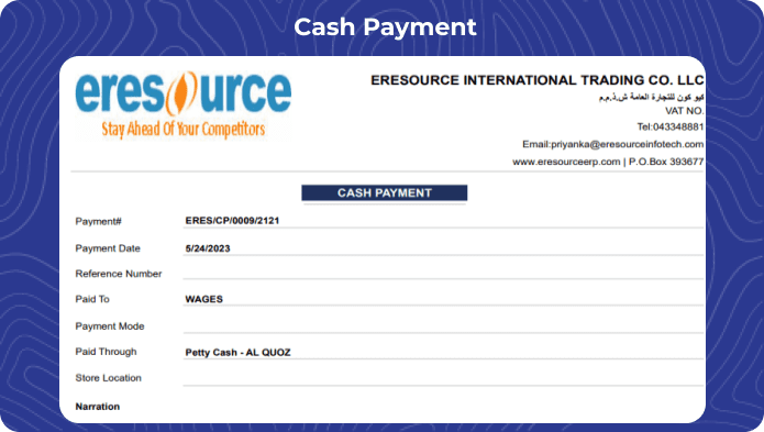 eresource ERP offers customizable reporting capabilities, allowing businesses to tailor financial reports to their specific requirements. This includes reports for different profit centers, divisions, and companies, ensuring that stakeholders have access to relevant and timely information.