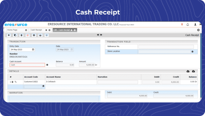 eresource ERP provides a unified platform for managing financial transactions of multiple companies. It allows businesses to maintain separate books of accounts for each company while consolidating financial statements for a holistic view.